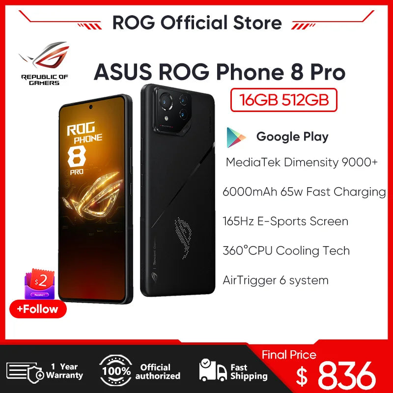 ASUS ROG Phone 8 Pro 5G Smartphone Snapdragon 8 Gen 3 6.78'' 165HZ AMOLED Display Gaming Phone 5500mAh 65W Charge 50MP NFC
