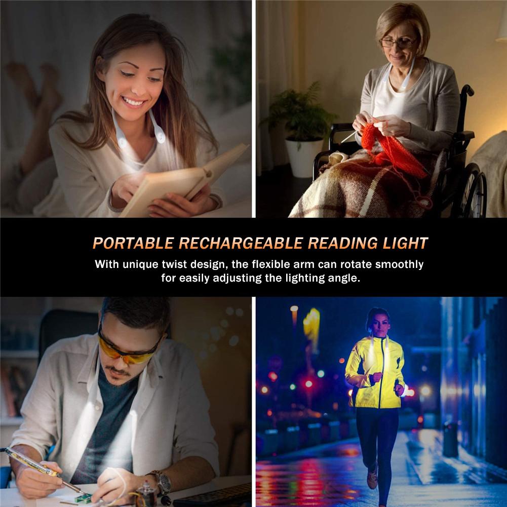 5.Wide Use: The book light is very suitable for indoor or outdoor, such as reading, jogging at night, patching, writing, working, etc.
