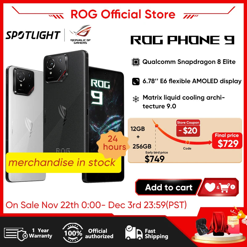 ROG Phone 9: 12GB+256GB 12GB+512GB ROG Phone 9 Pro(Ultimate): 16GB+512GB 24GB+1T |
